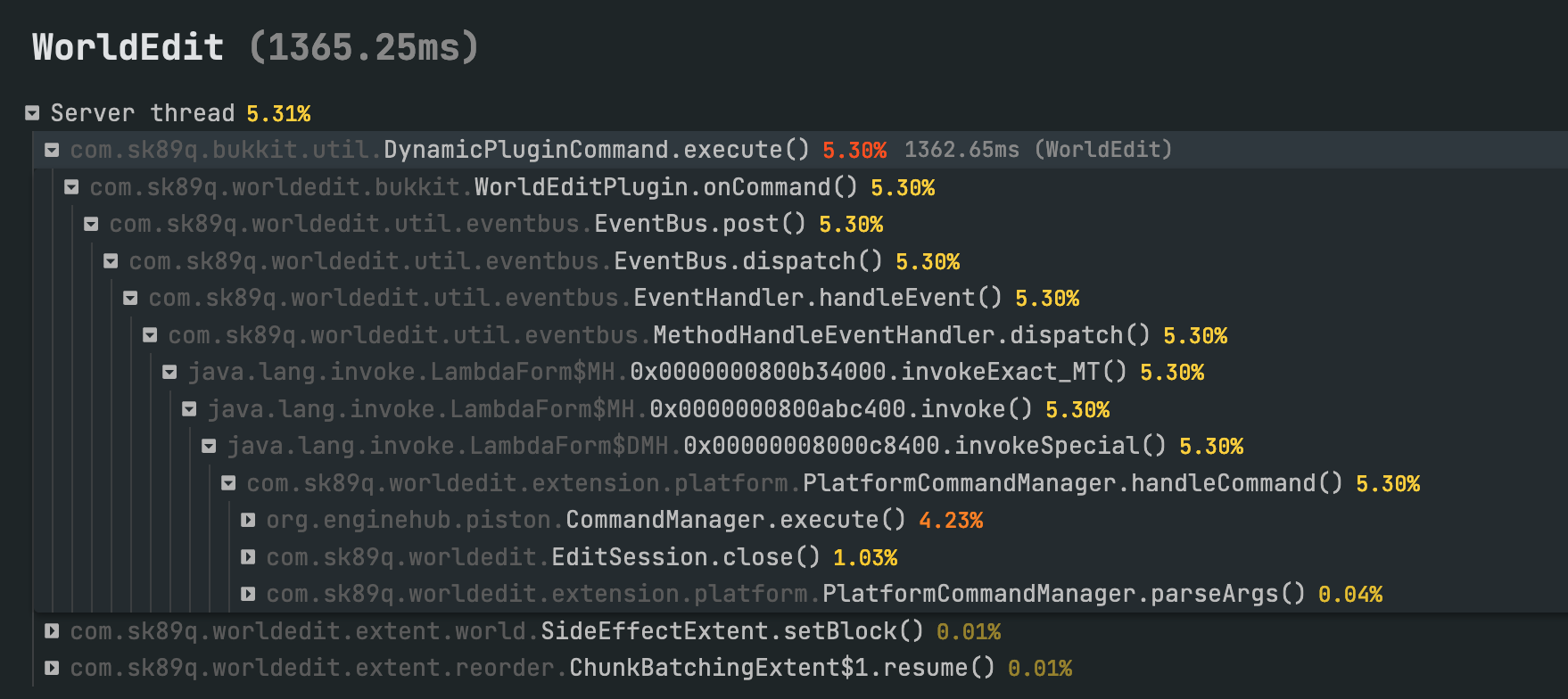 As you can see, the ticks when the WorldEdit action was executing saw increases of over 1000%!