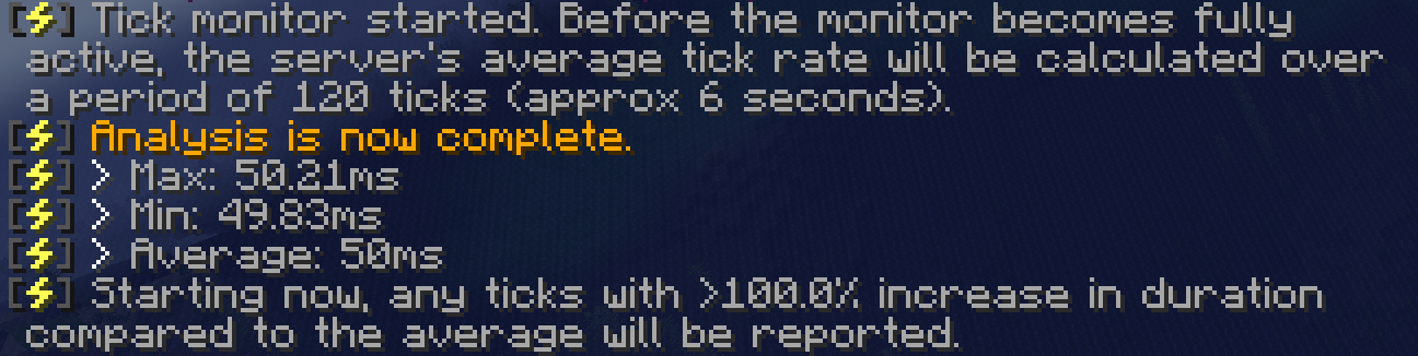 You can also specify the threshold top be an absolute tick duration, for example /spark tickmonitor --threshold-tick 50 to report any tick which exceeds 50 milliseconds (this is the point at which the server has to start catching up, or lagging).
